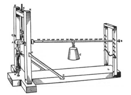 1729年Musschenbroek發(fā)明第一臺(tái)材料試驗(yàn)機(jī),它是根據(jù)杠桿原理制成的,形狀很像一臺(tái)大秤。