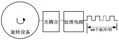 2、轉(zhuǎn)速測(cè)量:通過(guò)光耦合及相應(yīng)的處理電路,將轉(zhuǎn)速信號(hào)轉(zhuǎn)換成脈沖信號(hào)輸出,旋轉(zhuǎn)設(shè)備每轉(zhuǎn)動(dòng)一圈輸出60個(gè)脈沖。